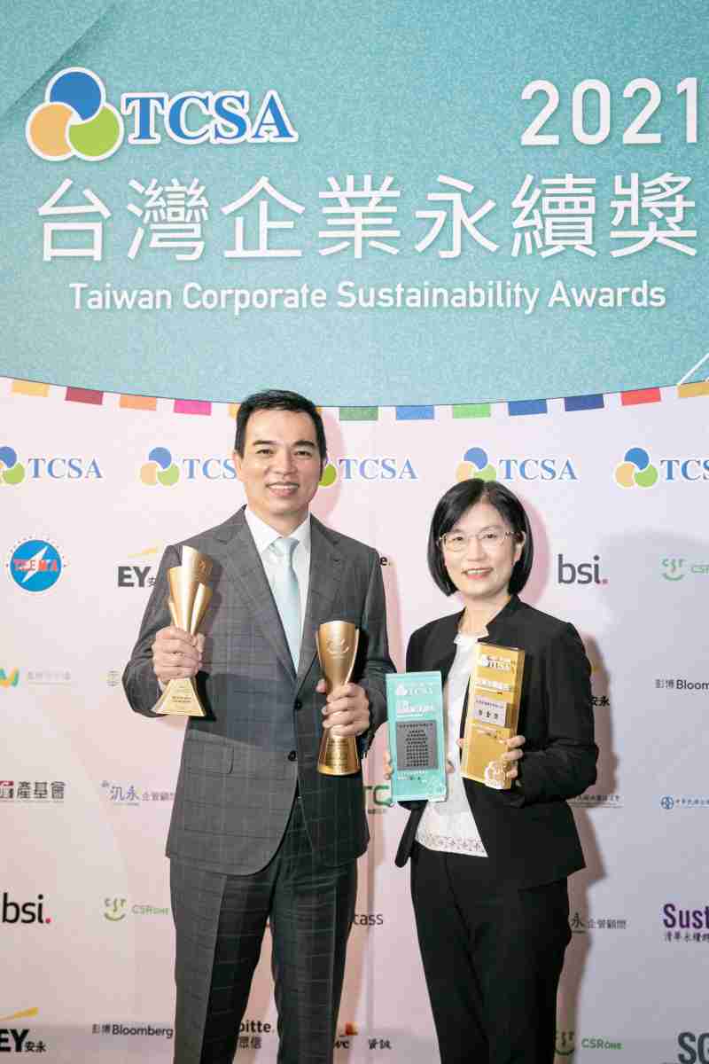 达在台湾永续奖所评比环境、、社会、、治理等各面向的永续绩效均获高度肯定 (左:牛牛游戏光电总经理暨营运长柯富仁,,,右:牛牛游戏光电永续长古秀华)