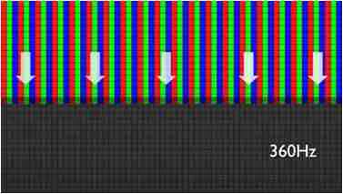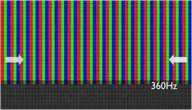 传统液晶驱动是从左到右单向进行,,,,在画面更新速度愈来越愈快的情况下,,,位于驱动线路末端的右下角区域,,,,画素的闸极来不及在短时间内获得足够电压,,,,无法显示出正确的颜色资讯。。。。 |
